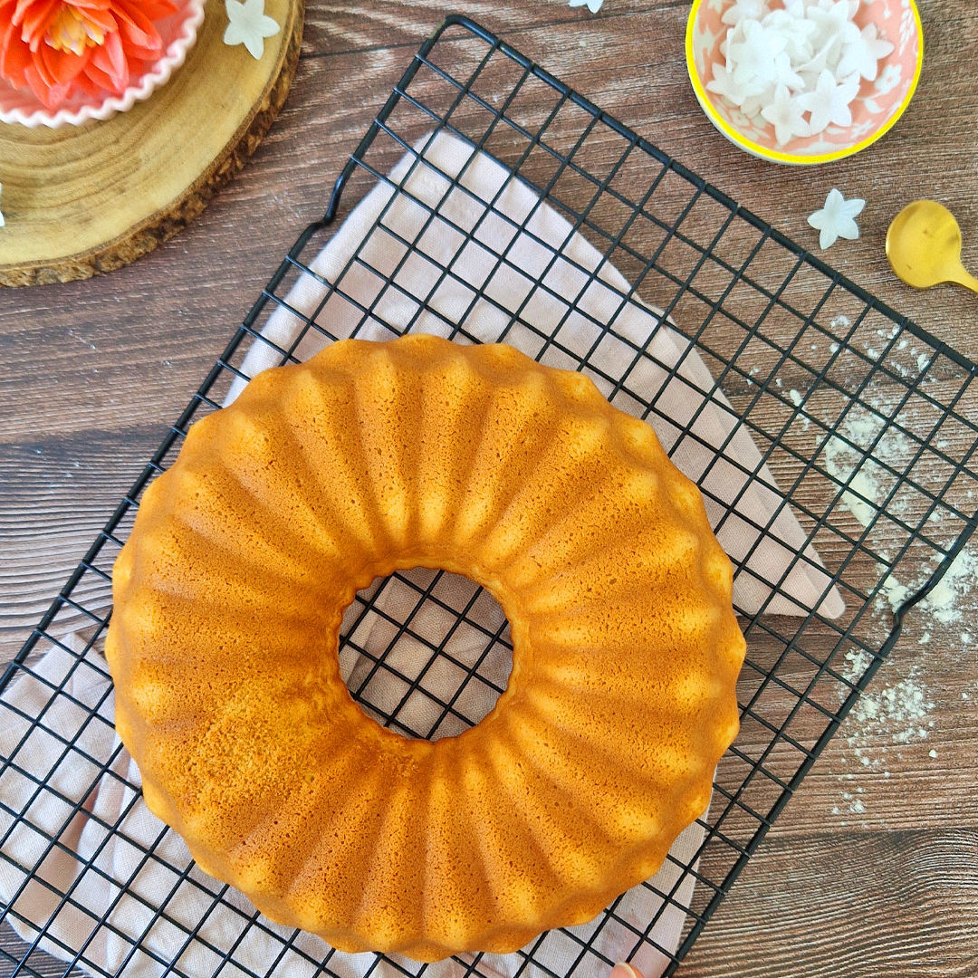 - Vierte la masa en un molde para bundt cake, previamente engrasado con mantequilla o rociado con spray antiadherente